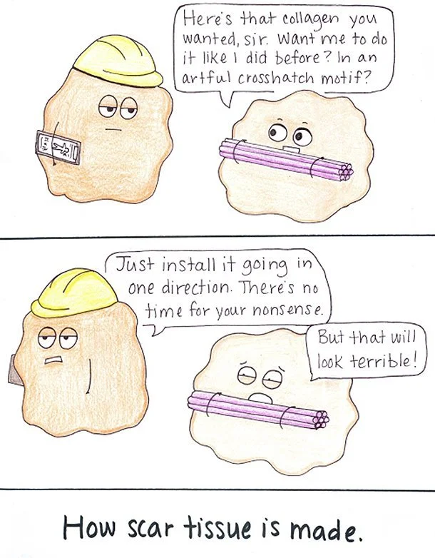For more information on skin, fascias, and scars: symptoms and systemic connections, click the link: READ THIS if you want to dive-in and geek out over the science of scars.
